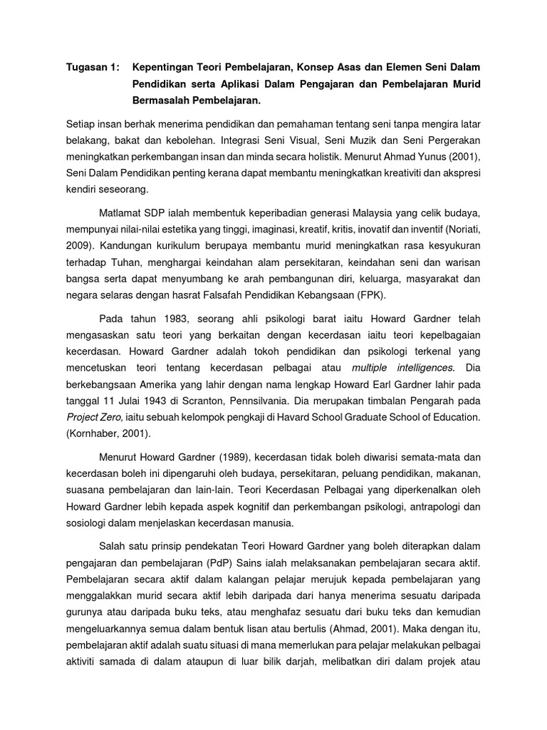 Pengertian pendidikan dengan seluruh totalitasnya dalam konteks islam inheren dengan konotasi istilah tarbiyah, ta'lim, dan ta'dib yang harus dipahami maka seharusnya pendidikan holistik harus bertumpu pada ciri totalitasnya dimana seluruh elemen yang ada dalam lingkungan peserta didik. Dalam pendidikan seni dan keterampilan, aktivitas berkesenian harus menampung kekhasan tersebut yang tertuang dalam pemberian pengalaman mengembangkan konsepsi, apresiasi, dan kreasi. Dalam seni visual ianya lebih melibatkan lukisan, manakala seni warna juga turut digunakan dalam seni dalam pendidikan iaitu dalam komponen pendidikan seni visual. Jika dilihat, garis memiliki bentuk memanjang dan memiliki sifat yang kaku, elatis dan tegas. Elemen kedua dalam seni rupa adalah garis. Warna juga turut digunakan dalam seni dalam pendidikan iaitu dalam komponen pendidikan seni visual. Penekanannya adalah kesan yang diperoleh dengan adanya dua elemen berlawanan.perbedaan mencolok dalam warna, bentuk, dan ukuran akan memberikan kesan bahwa tidak monoton. Seni dalam pendidikan atau singkatannya sdp menekankan sesuatu yang baru dan ianya menggabungkan tiga elemen penting. Unsur ketiga ini merupakan elemen. Kualiti garisan sangat penting dalam menghasilkan sesebuah lukisan. Garis banyak digunakan untuk awal dalam membuat suatu karya seni, yatu pembentukan sketsa. Tipografi digunakan sebagai metode untuk. Semua itu diperoleh melalui upaya eksplorasi elemen, prinsip, proses, dan teknik berkarya dalam konteks.