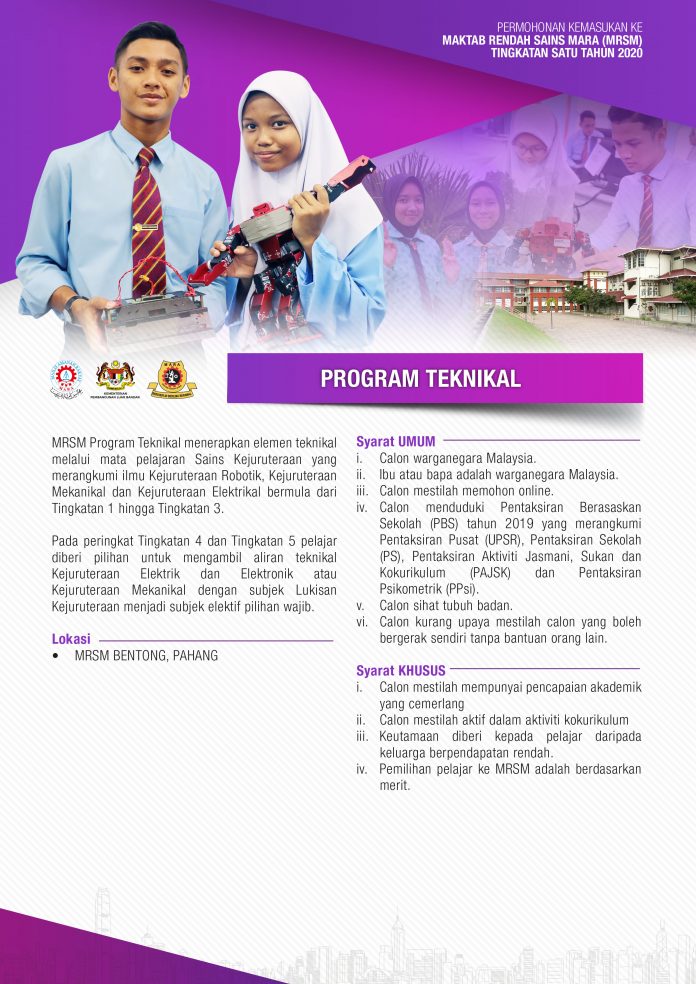 .mereka ke maktab rendah sains mara (mrsm) bagi tingkatan 1 dan 4 untuk tahun 2021, permohonan untuk kemasukan ke mrsm telah dibuka.