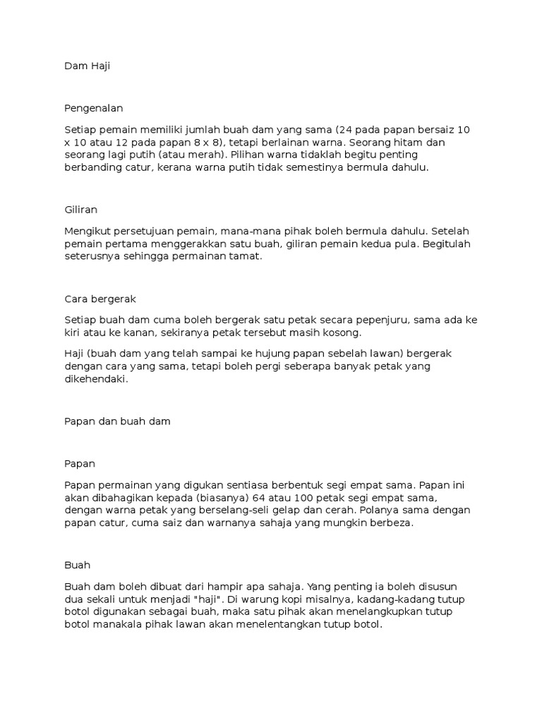 Penerangan permainan dam haji, peraturan by amirahaifan92 in dam haji. Jom main dam haji.mcm2 jenis dam pn ada. Dadu diberikan untuk mulakan permainan. Kali ini mereka membuat game dam inggris. Nah bagaimana cara mengetahui kapan waktu yang tepat dalam menjual dan membeli saham diperlukan pengetahuan. Dam, tidak seperti kebanyakan permainan papan lain, tidak bergantung kepada nasib. Sekiranya pemain berhenti di tapak tangga, pemain akan maju ke tapak seterusnya. Ada tiga cara membayar dam yang bisa dilakukan jemaah haji. 3,556 likes · 7 talking about this. Permainan catur diawali dengan buah catur yang berwarna putih kemudian baru dilanjut dengan warna hitam. Cara bermain dominoqq yang benar. Peserta akan bermain sehingga tiba di penamat. Permainan ini juga dapat dimainkan secara offline dan online.