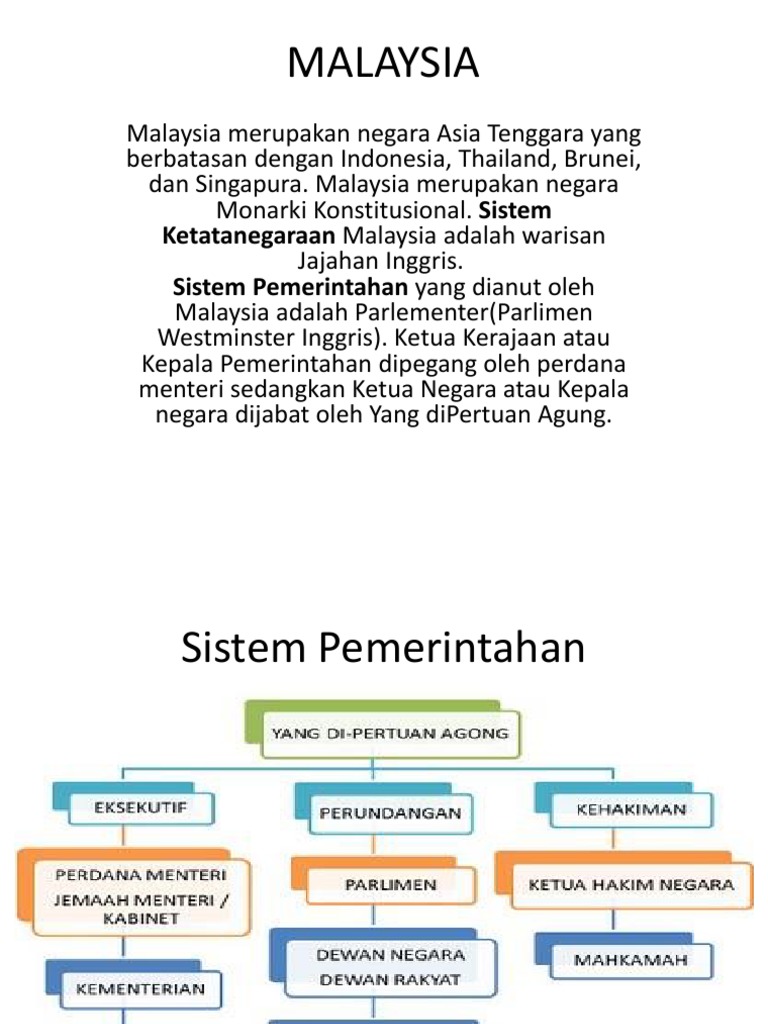 Model sistem pemerintahan negara malaysia ini mirip dengan sisitem parlementer westminster. Negara malaysia yang terdapat unsur islam di dalamnya. Asean didirikan pada tanggal 8 agustus 1967 di bangkok, thailand. Berdasarkan letaknya, wilayah malaysia dapat dibagi atas malaysia barat dan malaysia timur. Kerajaan brunei darussalam adalah negara yang memiliki corak pemerintahan monarki absolut dengan sultan yang menjabat sebagai.